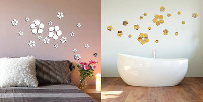 Set Wall Stickers Fancy 3D Floral Sticky Mirror Wall Decals Colorfast Acrylic Wall Stickers - 20 x Wall flower Stickers.